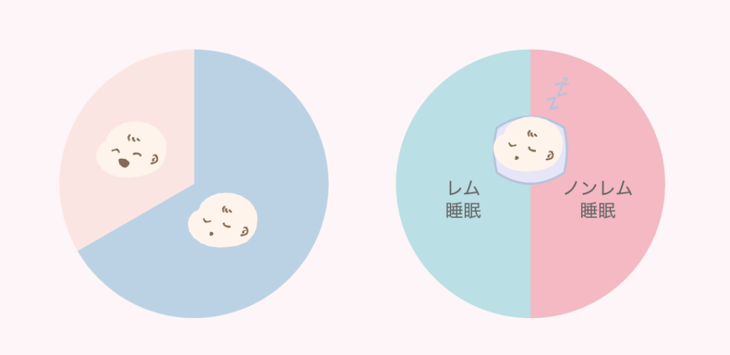 出生後1ヶ月頃までは、 赤ちゃんの一日の3分の2を占めている睡眠のおよそ50%がレム睡眠です。
